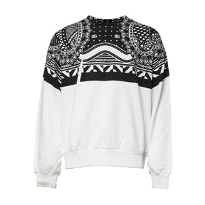 Dolce & Gabbana White Black Printed Cotton Sweatshirt Sweater