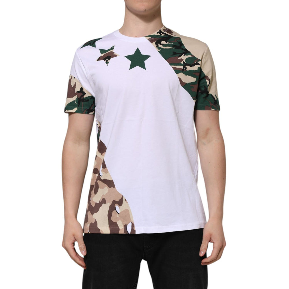Dolce & Gabbana White Camouflage Cotton Men Crew Neck T-shirt