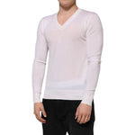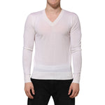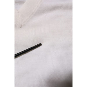 Dolce & Gabbana White Cashmere Logo V-neck Pullover Sweater