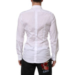Dolce & Gabbana White Cotton DG Logo Pearl Chain Formal Shirt