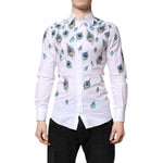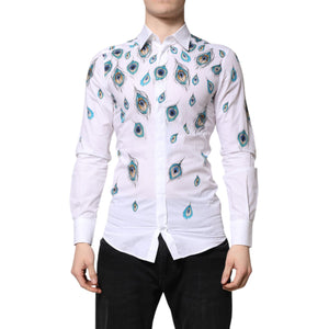 Dolce & Gabbana White Cotton Feather Print GOLD Dress Shirt