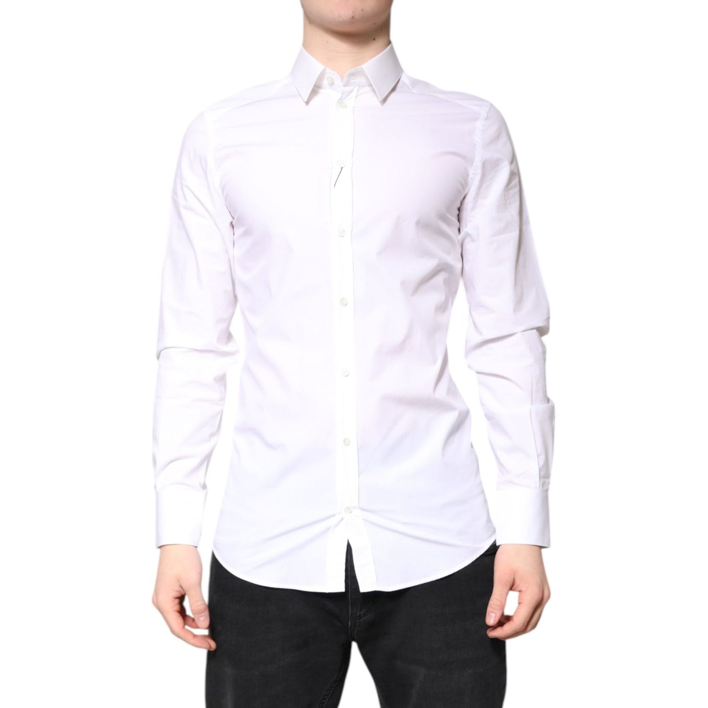 Dolce & Gabbana White Cotton GOLD Dress Formal Collared Shirt