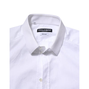 Dolce & Gabbana White Cotton GOLD Long Sleeve Men Dress Shirt