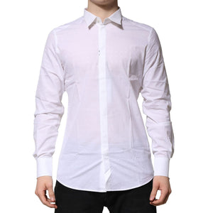 Dolce & Gabbana White Cotton GOLD Long Sleeves Formal Shirt