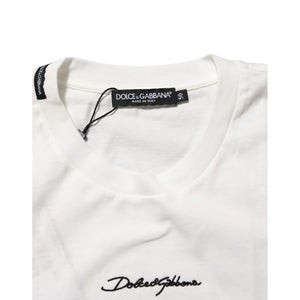 Dolce & Gabbana White Cotton Logo Print Crew Neck Men T-shirt