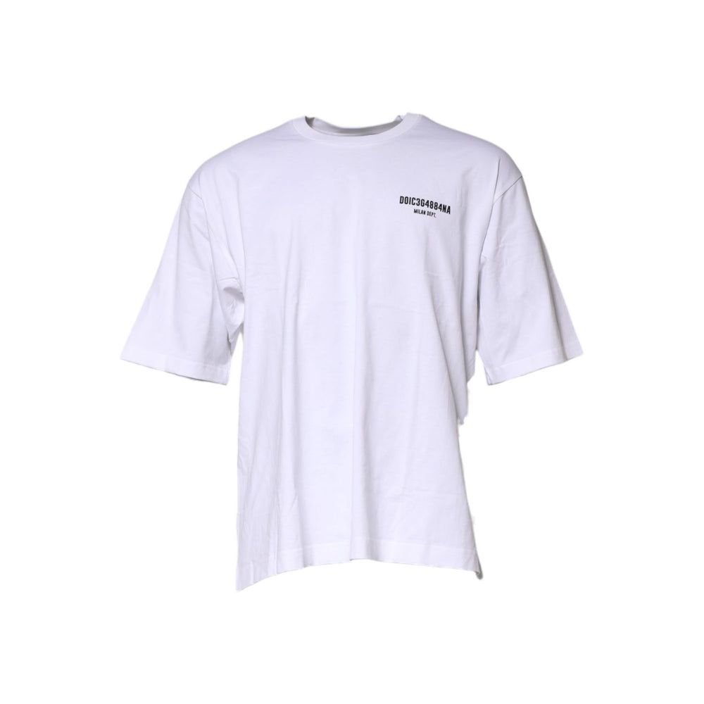 Dolce & Gabbana White Cotton Logo Print Crew Neck T-shirt