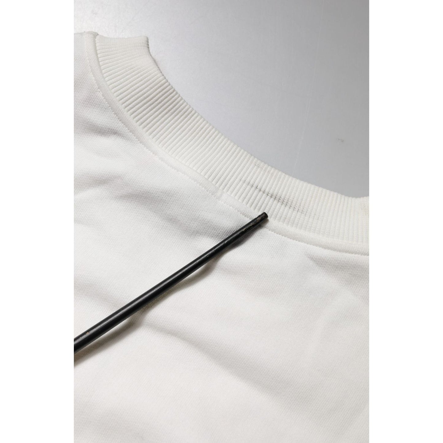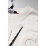 Dolce & Gabbana White Embossed Logo Cotton Crew Neck Sweater