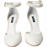 Dolce & Gabbana White Floral Jacquard Mary Janes Heels Pumps Shoes