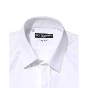 Dolce & Gabbana White GOLD Cotton Long Sleeves Dress Men Shirt