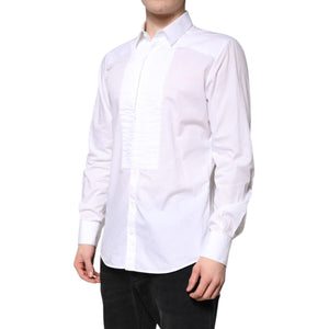 Dolce & Gabbana White GOLD Cotton Poplin Bib Men Dress Shirt