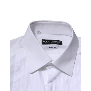 Dolce & Gabbana White GOLD Cotton Poplin Formal Dress Shirt