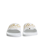 Dolce & Gabbana White Leather Slides Sandals Beachwear Shoes