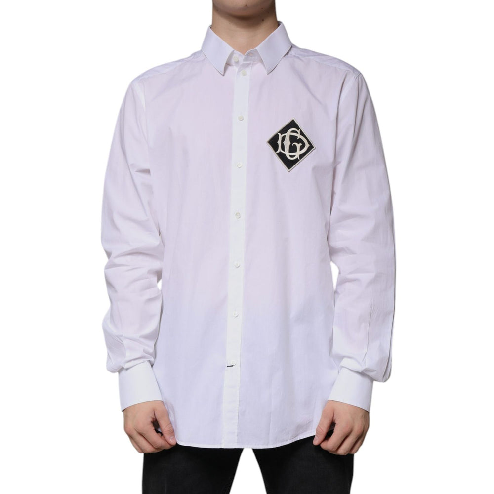 Dolce & Gabbana White Logo Cotton Slim Fit GOLD Dress Shirt