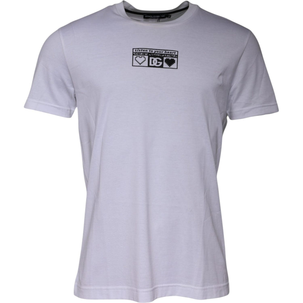 Dolce & Gabbana White Logo Print Cotton Crew Neck T-shirt