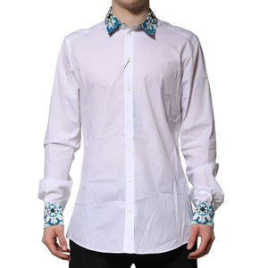 Dolce & Gabbana White Majolica Detailing GOLD Dress Shirt
