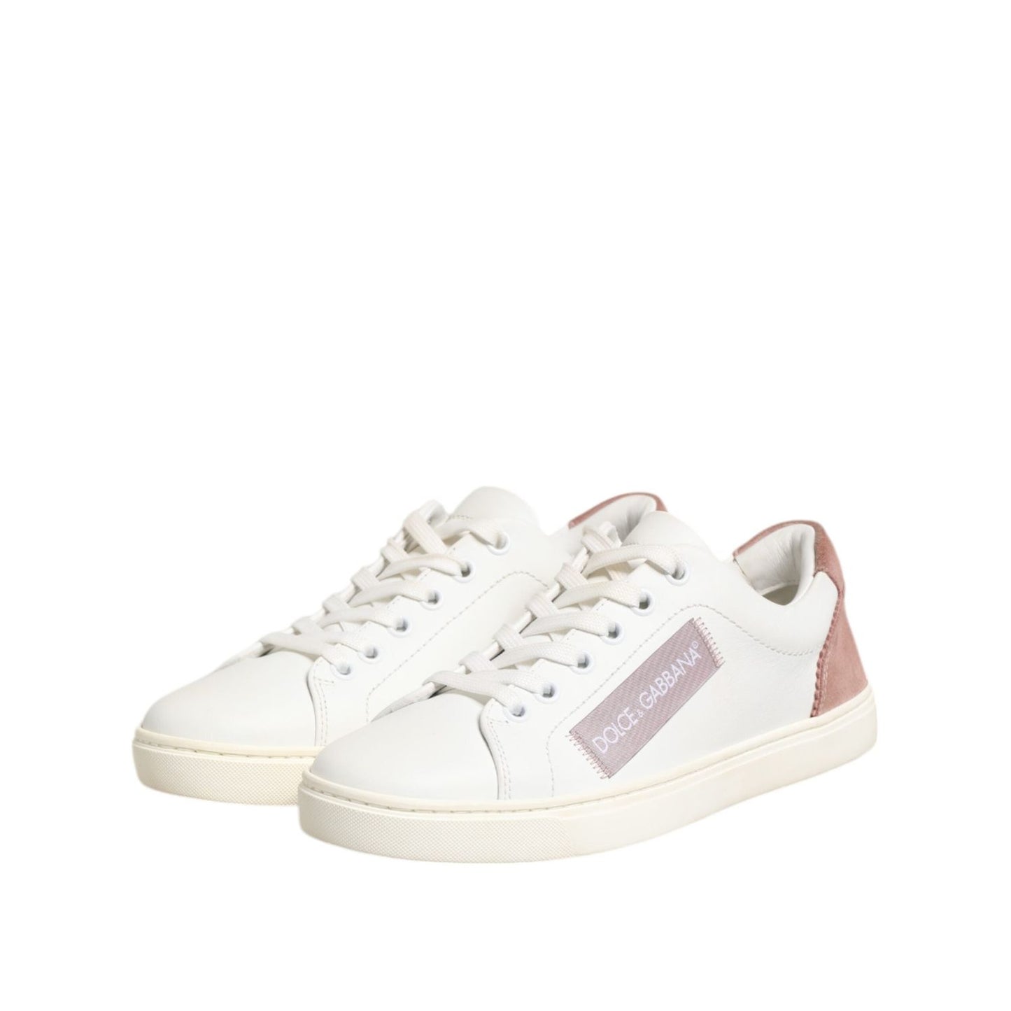 Dolce & Gabbana White Pink Leather Low Top Sneakers Shoes