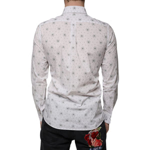 Dolce & Gabbana White Printed Cotton Slim Fit Men Dress Shirt