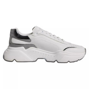 Dolce & Gabbana White Silver DAYMASTER Leather Sneakers Shoes