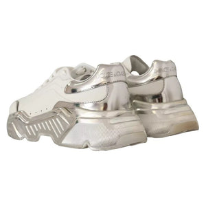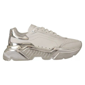 Dolce & Gabbana White Silver Leather Daymaster Sneakers Shoes