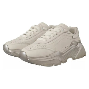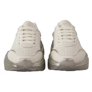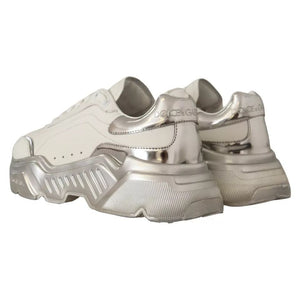 Dolce & Gabbana White Silver Leather Daymaster Sneakers Shoes