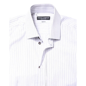 Dolce & Gabbana White Striped Cotton MARTINI Men Dress Shirt