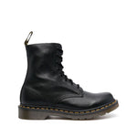 Pascal Virginia lace-up boots from DR. MARTENS featuring contrast stitching, logo pull-tab at the heel, front lace-up fastening, round toe, flat rubber sole, black and calf leather. 1460 Pascal boots Size and Fit - Heel 1,4 in / 3,5 cm; Platform 0,8 in / 2 cm