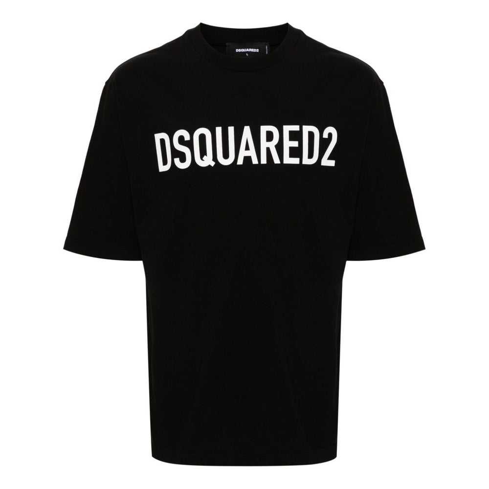 black cotton soft jersey round neck logo print to the front short sleeves straight hem Logo cotton t-shirt Size and Fit - This piece fits true to size. We recommend you get your regular size. Model is 1,84m / 6ft 1in wearing size M