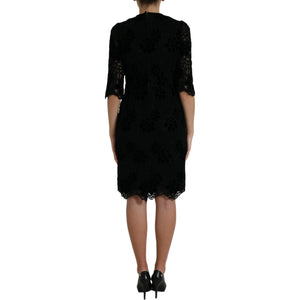 Dolce & Gabbana Black Floral Lace Cotton Bodycon Dress