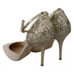 Elisabetta Franchi Beige Linen Ankle Strap High Heels Shoes