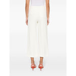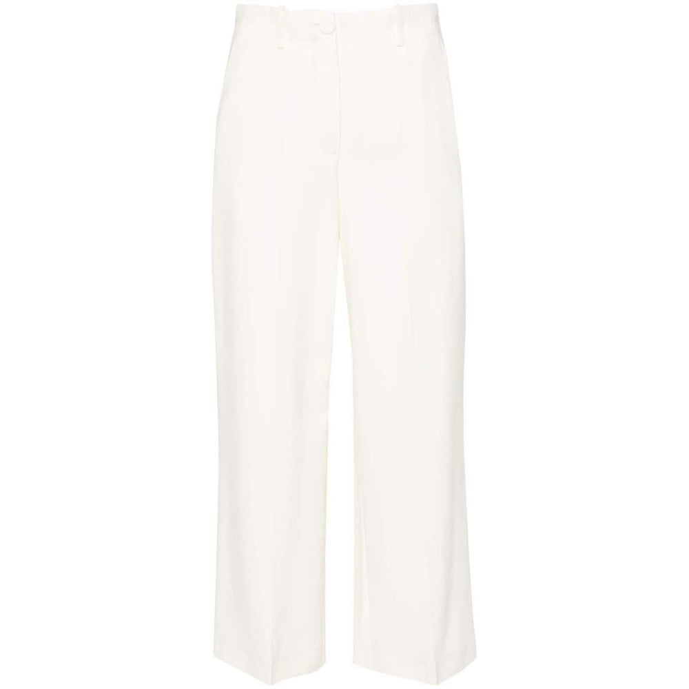 ivory white cady texture belt loops pressed crease two diagonal pockets to the sides rear welt pocket straight leg cropped concealed fly and button fastening Wide-leg trousers Size and Fit - This piece fits true to size. We recommend you get your regular size. Model is 1,75m / 5ft 8in wearing size 40 (IT)