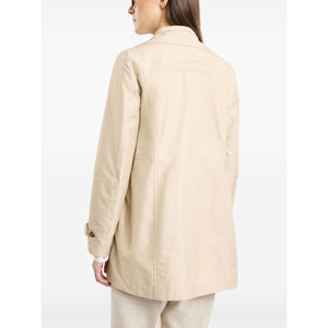beige hook fastening concealed front zip fastening two side flap pockets buttoned cuffs Popeline morning coat Size and Fit - This piece fits true to size. We recommend you get your regular size. Model is 1,75m / 5ft 8in wearing size S