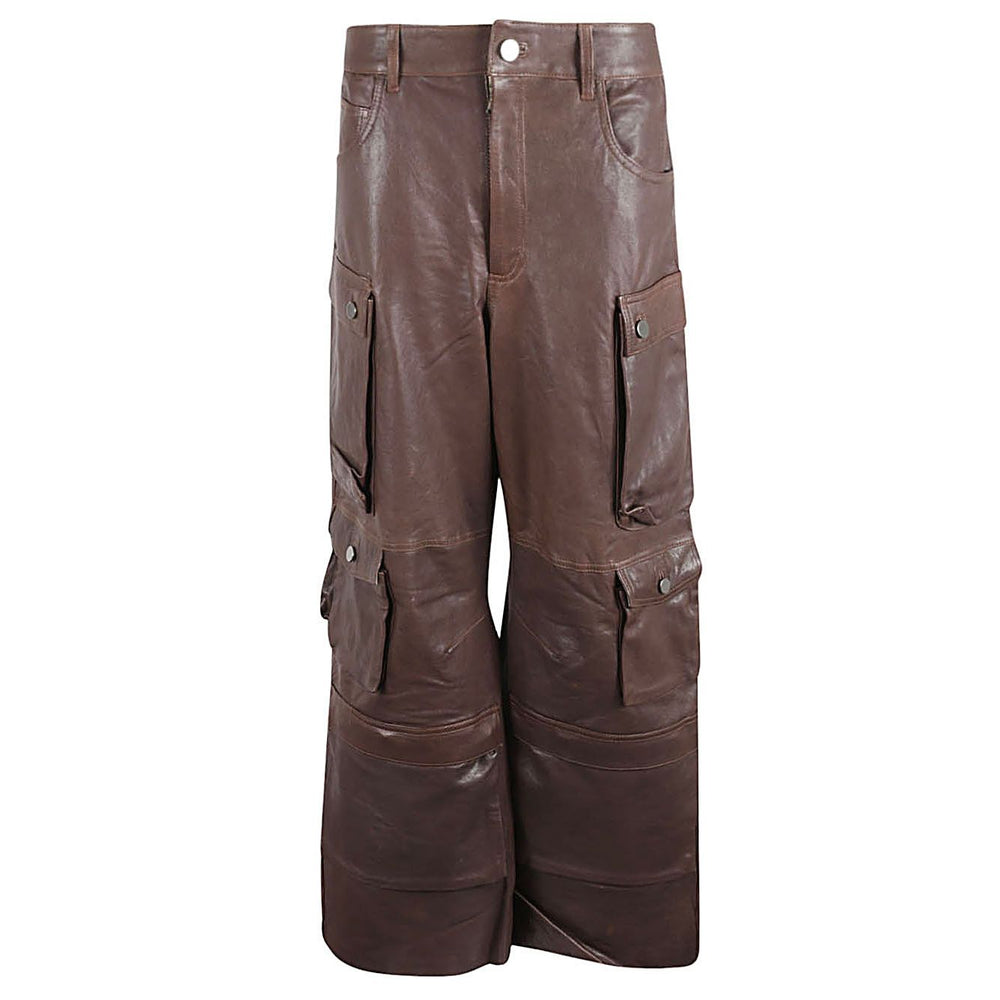 Cargo brown trousers, lateral pockets on Entmbi Figure, zip and button closure, money holder pocket, pocket closure with buttons. Leather cargo pants Size and Fit - This piece fits true to size. We recommend you get your regular size. Model is 1,75m / 5ft 8in wearing size 40 (IT)