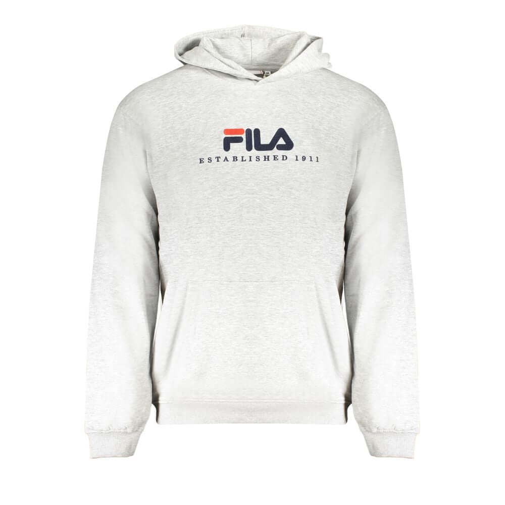 Elevate your casual wear collection with the essence of sporty chic in this Fila hooded sweatshirt. Perfect for cooler days, this long sleeve hoodie boasts a central pocket and bold embroidery featuring the iconic Fila logo. Crafted with a blend of materials for maximum comfort and durability, it exudes a gray tone that seamlessly blends with any ensemble. Make a trendsetting statement while enjoying the comfort and quality Fila is known for.