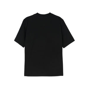 black organic cotton jersey texture mock neck short sleeves straight hem Cotton t-shirt Size and Fit - This piece fits true to size. We recommend you get your regular size. Model is 1,75m / 5ft 8in wearing size S