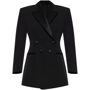 black structured silhouette notch lapels double breasted button closure side pockets long sleeves Wool smoking jacket Size and Fit - This piece fits true to size. We recommend you get your regular size. Model is 1,75m / 5ft 8in wearing size 36 (FR)
