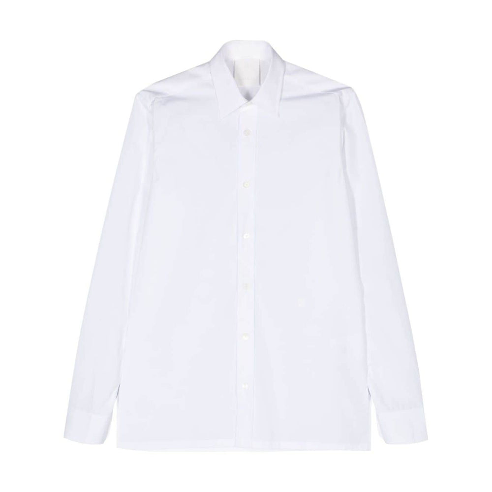 white cotton poplin texture signature 4G motif spread collar front button fastening logo-debossed buttons long sleeves with buttoned cuffs straight hem Cotton shirt Size and Fit - This piece fits true to size. We recommend you get your regular size. Model is 1,84m / 6ft 1in wearing size 39 (COLLAR CM)