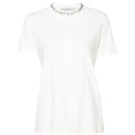 white cotton jersey texture crew neck rhinestone embellishment short sleeves logo patch to the rear straight hem Embroidered cotton t-shirt Size and Fit - This piece fits true to size. We recommend you get your regular size. Model is 1,75m / 5ft 8in wearing size S