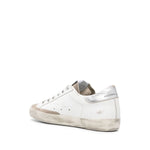 cloud white bovine leather signature star patch to the sides metallic heel counter logo patch at the tongue round toe front lace-up fastening branded insole flat rubber sole Super-Star leather sneakers Size and Fit - Heel height 2cm.