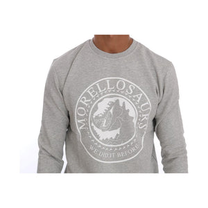 Frankie Morello Gray Cotton Crewneck Pullover Sweater