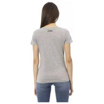 Elevate your style game with a touch of sophistication and contemporary edge with Trussardi Action’s Short Sleeve T-shirt. This isn’t just any tee—it’s a statement piece, featuring a striking front print that captivates at first glance. Crafted from a luxurious blend of cotton and viscose, it’s the epitome of comfort meeting chic. Perfectly tailored with a classic round neck that adds to its timeless elegance. Whether you’re curating a casual look or layering for impact, this gray Trussardi Action top is a versatile must-have for the fashion-forward woman.