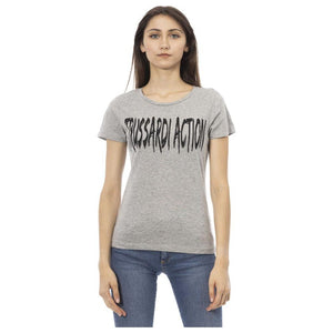 Unleash your bold fashion sense with the ‘Trussardi Action’ Short Sleeve Tee—a testament to effortless style and comfort. This gray round-neck t-shirt boasts an alluring front print that captures the essence of contemporary chic. Perfectly blending cotton and viscose, it offers a luxurious touch on your skin. Made with pride in Bangladesh, this top will elevate your casual repertoire.