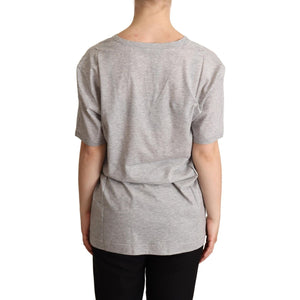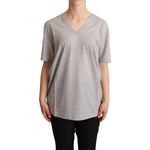 Dolce & Gabbana Gray Solid 100% Cotton V-neck Top T-shirt