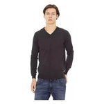 Infuse your wardrobe with the contemporary elegance of Baldinini Trend. This sleek V-neck sweater, adorned with the iconic Baldinini monogram in striking metal, exemplifies Italian craftsmanship at its finest. Its subtle gray hue allows for versatile styling, making it a luxurious staple for the modern man’s collection. Perfectly paired with tailored trousers or casual jeans, it promises to elevate your ensemble with a touch of sophistication.