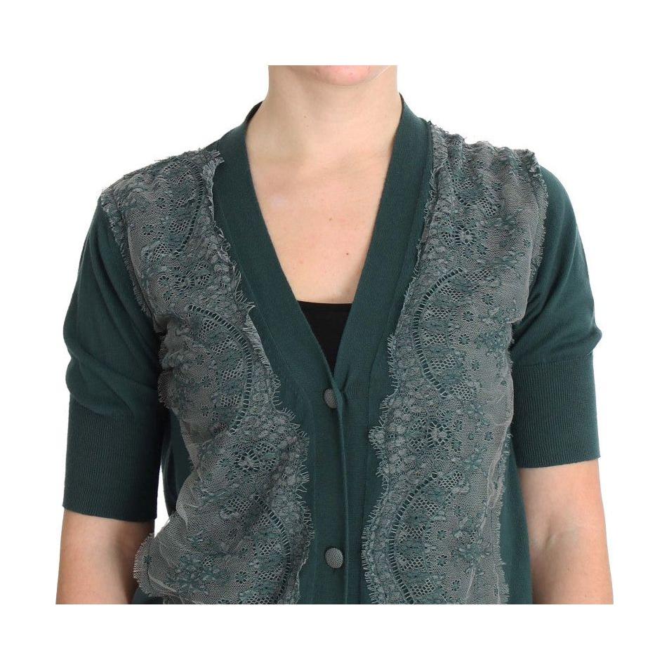 PINK MEMORIES Green Lace Cotton Cardigan Sweater