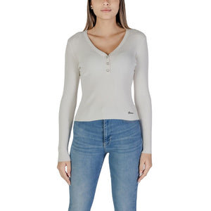 The Guess BLAIRE VN LS HENLEY SWTR W4YR16 Z2V62 women’s sweater is a must-have piece for the modern wardrobe, ideal for those seeking a refined and contemporary style. Crafted from a soft blend of viscose (65%) and polyamide (35%), this sweater ensures a comfortable fit and a pleasant feel against the skin. The ribbed design enhances the silhouette, while the V-neckline with buttons adds an elegant and feminine touch. Featuring long sleeves, it is perfect for transitional seasons and can be paired with both casual and more sophisticated outfits. The metallic Guess logo detail at the hem provides a trendy and distinctive accent.