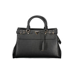 Elevate your accessory game with the Guess Jeans ECO ALI BAG — a sleek expression of eco-conscious fashion and style. This black handbag blends functionality with bold aesthetics, featuring contrasting details for that extra pop. Its spacious two compartments, central and full pockets coupled with internal phone spaces assure your essentials are neatly organized. Carry it by its chic handles or sling over the shoulder with the adjustable strap, complemented by the iconic Guess logo for that signature touch.