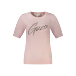 Dazzle in Guess Jeans’ chic short-sleeved sweater, where comfort meets glamour. Crafted with a soft blend, its eye-catching rhinestone logo and contrasting details offer a contemporary twist to your wardrobe. Ideal for a bold fashionista ready to make a statement with every entrance.