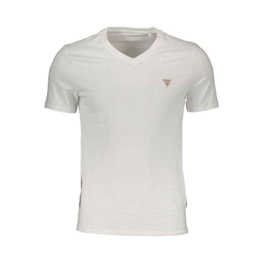 Elevate your wardrobe with this sleek Guess Jeans V-neck T-shirt, a perfect blend of casual elegance and environmental awareness. Boldly bearing the Guess Jeans applique logo, its organic cotton fabric is a testament to your commitment to sustainable fashion. A versatile white canvas for day-to-night transitions, it’s the ultimate style staple for the modern trendsetter.