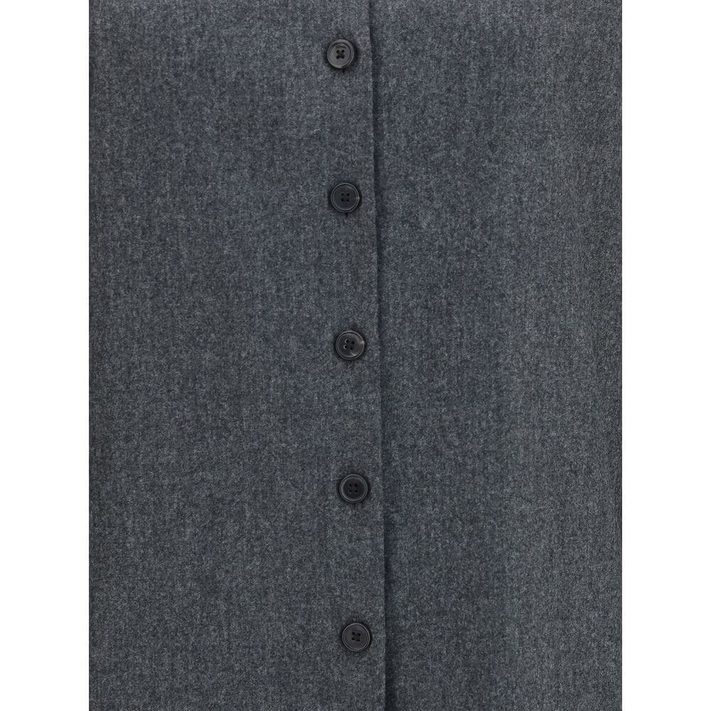 The Auryn Shirt by Khaite combines clean lines with refined materials for effortless elegance. Crafted from dark grey melange wool, it features a front button closure that enhances its understated sophistication. A versatile piece, ideal for elevating both casual and refined outfits.