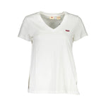 Exude effortless style and timeless appeal with this crisp white Levi’s tee. Crafted for the modern trendsetter, it features a flattering V-neck cut that accentuates your silhouette, and the iconic logo emblazoned on the front affirms your fashion-forward choice. Made with quality cotton for supreme comfort, this top is a must-have wardrobe staple for those who dare to stand out.